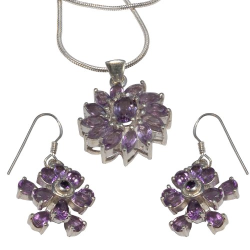 Sterling Silver Amethyst Pendant & Earrings Gemstone Jewelry Features